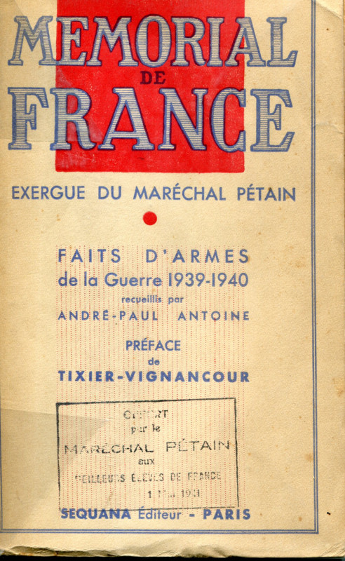 Couverture du Mémorial de France André-Paul Antoine, Mémorial de France, Séquana éditeur, 1941