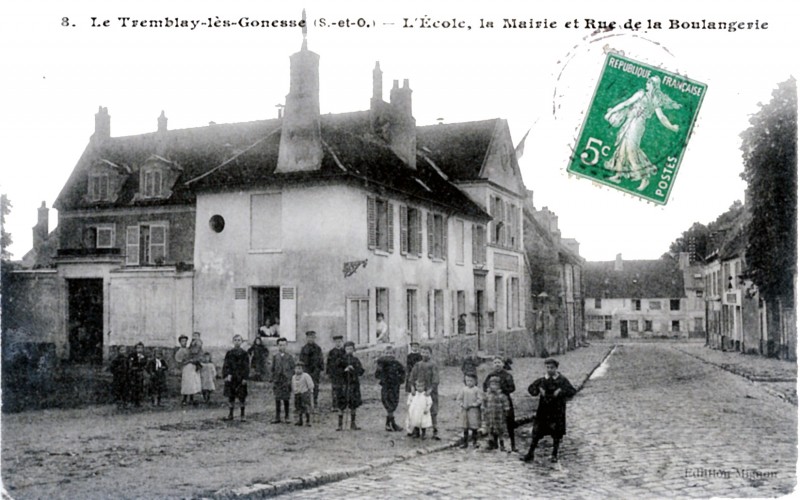 Ce cliché montre les hauts murs du presbytère de Tremblay, situé à gauche de la Mairie. Le 3 septembre 1914, il servit de cadre à la rencontre entre le général Maunoury, commandant la 6ème Armée et le général Gallieni, Gouverneur militaire de Paris.
