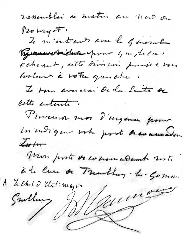 Prévenez-moi d’urgence pour m’indiquer votre poste de commandement. Mon poste de commandement reste à la cure de Tremblay-lès-Gonesse.