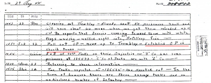 l4h50 Pull out OP (Observation Post)- move up to Tremblay - Establish observation Post in church tower