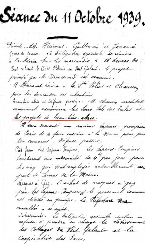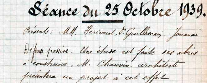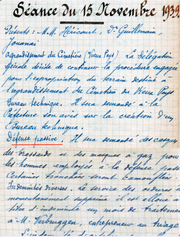 La première des délibérations de la délégation spéciale relative à la défense passive est prise, le 11 octobre 1939 :